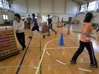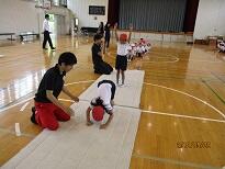 後半は、体験コーナーです。新体操の手具を使ったコーナー、マット運動のコーナー