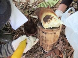 子どもたちはタケノコ掘りとそのお礼でグリーンヒル貝取の方とつながったことをもとに、