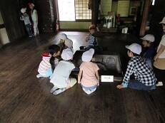 1年生が自分で学校探検の計画を立てて、園児を連れて学校を回りました。