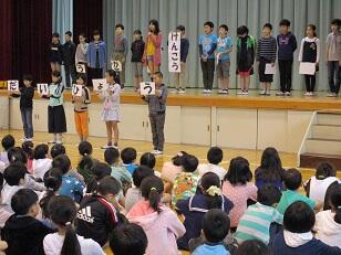 今回は中学年6組が出場しました。司会は集会委員会が担当します。