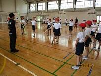 6年生は新体操の手具を使った運動を教わりました。