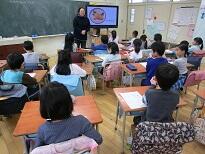保護者のお手伝いの方、多摩市学校給食センターの栄養士2名、栄養教諭と学級担任が8班に分かれたグループに1人ずつ入って指導しました。