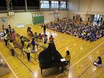 全校児童の前で5年生が発表曲を演奏しました。