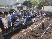 10月26日。6年生から引き継いだ麦畑に種を蒔きました。