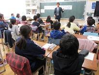 1月12日。日本サッカー協会主催の「JFAこころのプロジェクト」がスポーツ選手を「夢先生」として学校に派遣する「夢の教室」に5年生が参加しました。