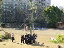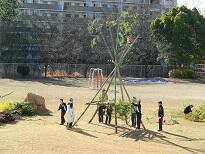 やぐらが完成したので、次は、今年、初めて登場の子どもやぐらをつくりました。