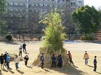 しめ飾りなどは、燃やすものとプラスチック、金属に分別します。ここでも小学生のボランティアが活躍。