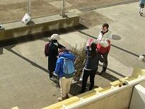 10時過ぎに篠竹グループが帰還。危なくないように篠竹の根元や枝を払い、水できれいに洗います。