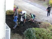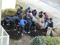 最後に残る灰を埋める穴も、事前に掘っておきます。ここでも小学生ボランティアが活躍。