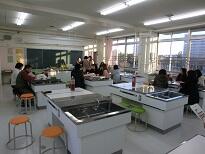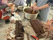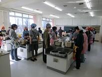 家庭科室では豚汁、甘酒の準備。熱気でいっぱいです。高学年女子の子どもボランティア2名が参加。