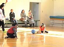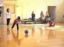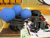 10月20日。パラディスボールは、アイマスクをして、転がすと音がするボールを投げたり蹴ったりします。