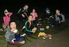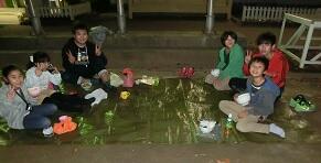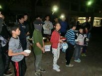 19時、カレーができました。このあとは、学校林のナイトハイクをした後、校庭で寝るビバーク体験です。