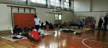 11月3日、夜中0時頃に雨が降ったため、体育館に避難して寝ました。
