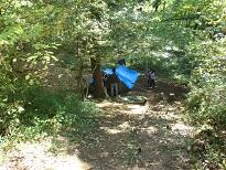 片付けをした後、お昼のお弁当を作ってから、今日、寝泊まりする秘密基地を学校林に作ります。