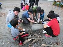 16時集合、16時30分 開校式 学校林で薪を拾って火起こし