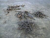 初めは枝を拾って集める予定でしたが、遊歩道の区切りに置いてある木を