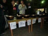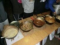 左から、1班クリームシチュー、2班青椒肉絲、3班ビーフシチュー、4班麻婆豆腐、5班クリームシチューです。