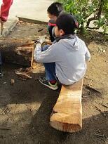 不思議チームはいつもご指導いただいている多摩市グリーンライブセンターの方に秘密基地のための杭づくりをご指導いただきました。