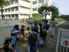 本校では毎週水曜日の登校時に地区班による集団登校を行っています。