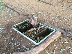 おやじの会による学校林作業で水場(ビオトープ)をつくることができました。
