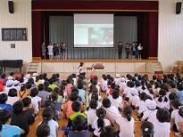 5月17日、学校林公開週間で大活躍した学校林委員会が児童集会で発表しました。
