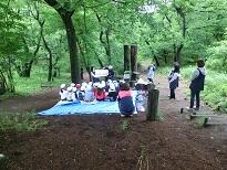 毎年、新緑がきれいで蚊が出ない時期に学校林の階段教室で読み聞かせをしています。