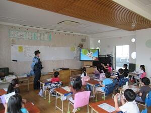 7/13(月)、北貝取駐在所のお巡りさんを講師にお招きし、1年生が交通安全教室を実施しました。