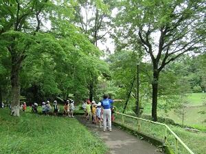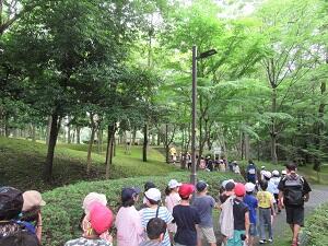 7/21(火)、6年生が1年生に学校林を案内しました。