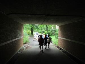 ガイドも手を叩くだけでしたが、しだいに「今、スロープだよ」「あと5歩進んで」「ここで階段終わり