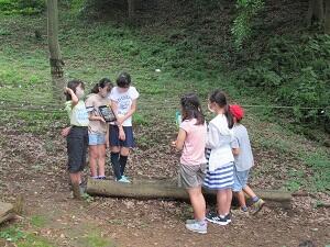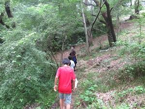 7/31(金)、5年生と6年生が学校林で総合的な学習の時間の学習を行いました。