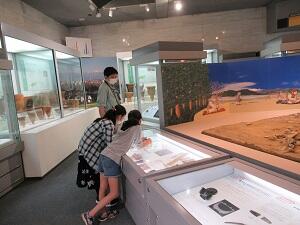 学級を3つのグループに分けて、学芸員の方からの説明を聞きました。聞いたお話や土器・竪穴住居など