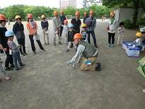 遊具の紹介では、多摩一小の子どもたちに遊んでもらって、自分たちは下で見守っていました。