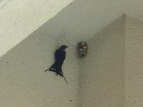 5月29日、ツバメが巣をつくっているのを見つけました。