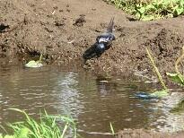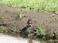 案の定、水田の畔(あぜ)で泥をくわえて飛んで行きます。