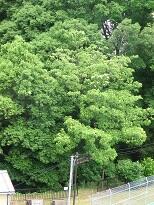 6月1日。総合的な学習の時間で学校林を調べている6年生の動物斑が