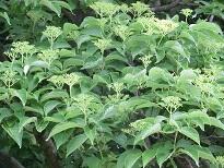 5月30日。学校林のプール側入口にあるクマノミズキが咲いているのを見つけました。