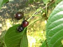 サクラの実 黒く熟すと食べられる。苦甘い。鳥が群がって食べています。