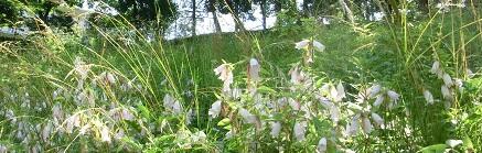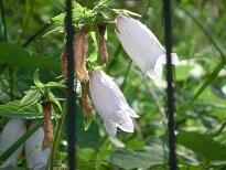 学校林西端、ミニバスの通りに沿ったフェンス際にたくさんのホタルブクロが咲いています。