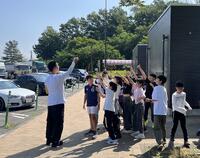 境川PAに到着しました。天気は晴れ。雨の心配がありません。バス内では、ジャンケン大会やイントロクイズなど、バスレク担当の子が盛り上げてくれました。
