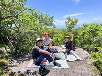 物見岩に着きました。待ちに待った昼食タイムです。岩や石に足の力を奪われて、クタクタです。だからこそ、「水が美味しい」「お弁当サイコー」と大喜びです。