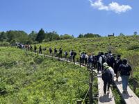 八島湿原に到着しました。みんなで声を掛け合って、ゴールしました。途中、「足が痛い」「まだ着かないの」と辛そうな声も出ましたが、「もう少し」「がんばろ」と変換して、助け合っていました。がんばったかいがあって、大きな爽快感と達成感を味わいました。