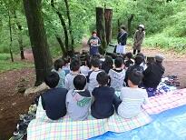5月7日、8日。図書ボランティアの方々による学校林での読み聞かせを全学級で行いました。