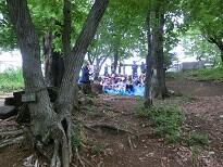毎年、新緑がきれいで蚊が出ない時期に学校林の階段教室で読み聞かせをしています。