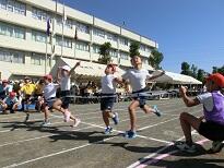 全校競技「大玉送り」は1勝1敗で引き分け。