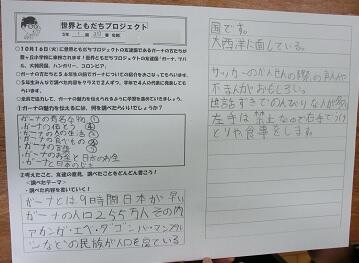 9月15日、5年生が世界ともだちプロジェクトとガーナ共和国について学習しました。