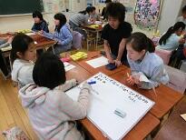 1年生は教室に戻って、写真を基に、安全な避難場所について一般化しました。