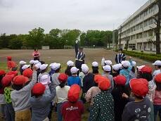 4月17日、多摩中央警察署の方をお招きして1年生が横断歩行訓練をしました。