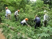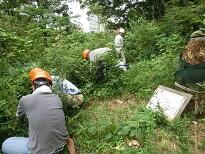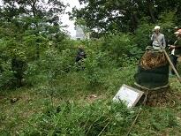 下草刈りをしました。右の写真は残す木以外を刈り進めているところです。