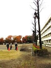12月2日、校庭周りの剪定に続き、北門駐車場脇のケヤキも