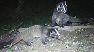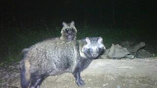 そして、近隣で目撃情報のあったハクビシン(写真:右)も来ました。ハクビシンは外来生物とされています。